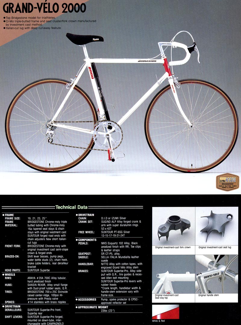 In 1985, one year after Grant Peterson joined the company, Bridgestone released onto the world the Grand Velo 2000.